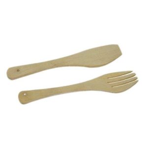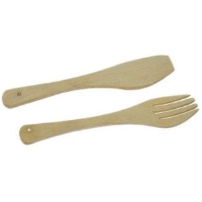 ست 2 پارچه قاشق و چنگال چوبی مدل ساده