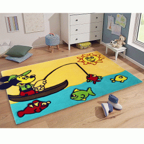 فرش بهتافت نیمه دستبافت طرح کودک 9207 با الیاف طبیعی سایز 90×150