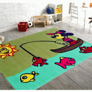 فرش بهتافت نیمه دستبافت طرح کودک 9495 با الیاف طبیعی سایز 150×100