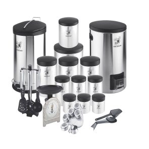 سرویس 23 پارچه آشپزخانه بهاز کالا طرح استیل درب مشکی